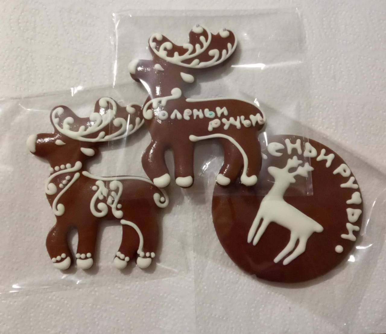 - Пряник в форме оленя с тематической надписью